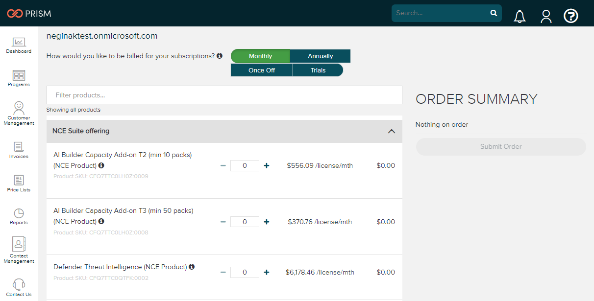 Note: NCE Products will be identifiable by having “NCE Product” in the product name or the Product SKU ID will have a “:00” within it.