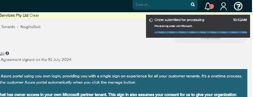 On selecting “Yes”, A job will then be lodged with Microsoft to cancel the subscription, in PRISM you will see the below notification whilst this job is occurring, and all change options will be greyed out.