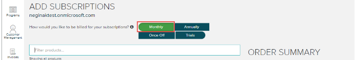 Within the Add Subscriptions page, ensure that the billing toggle is set to “Monthly”, so only monthly products are shown.