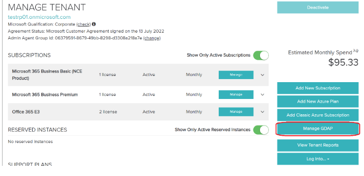 To Terminate a GDAP relationship, you need to have an Active GDAP relationship. Navigate to the Manage GDAP button within the Tenant