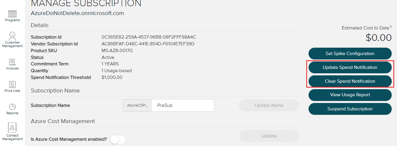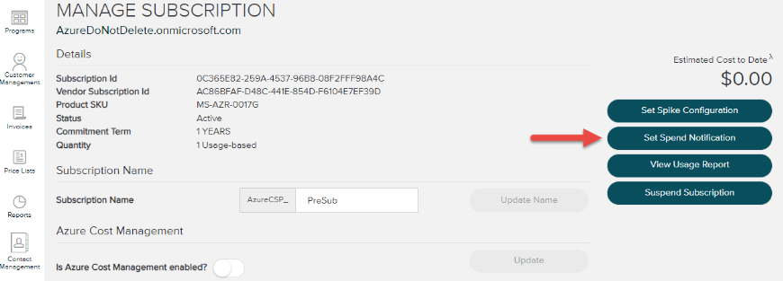 - Target Month Spend - enter the dollar value amount that you would like to set as the targeted monthly spend amount against this Azure Subscription. Please note that the currency displayed will match to your buy currency for Microsoft CSP.